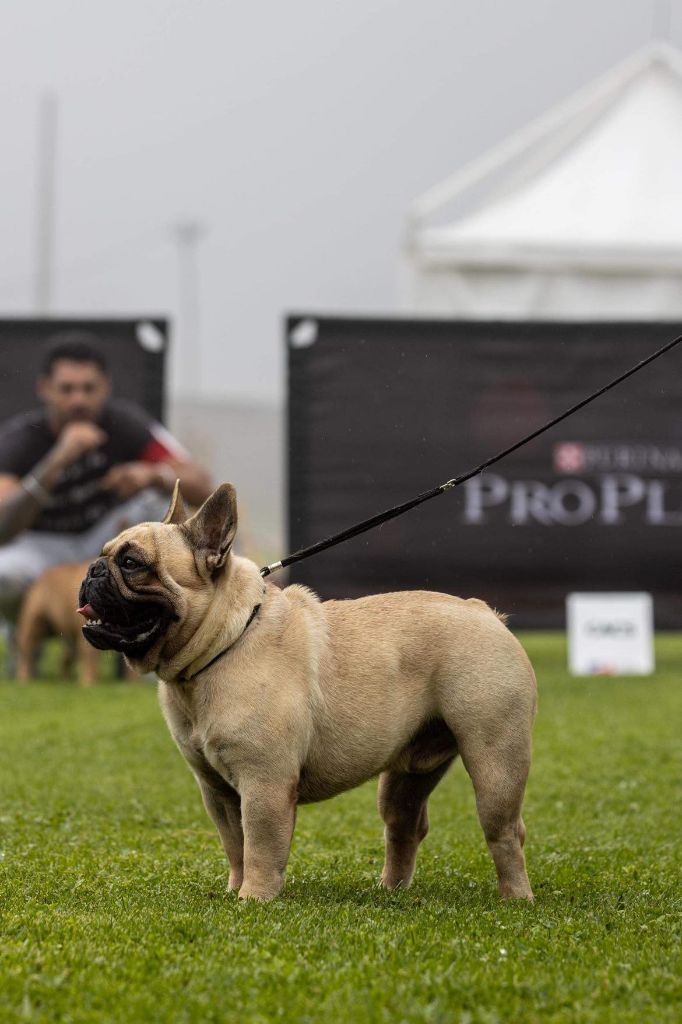 12,4kg 34cm jolie tête exc taille ?il tête un peu plissé mâchoire large exc nez posture ossature AR main très droite malheureusement pas condition expositions. pour les poils MUT correct Aut correct AR A gronder sur la table